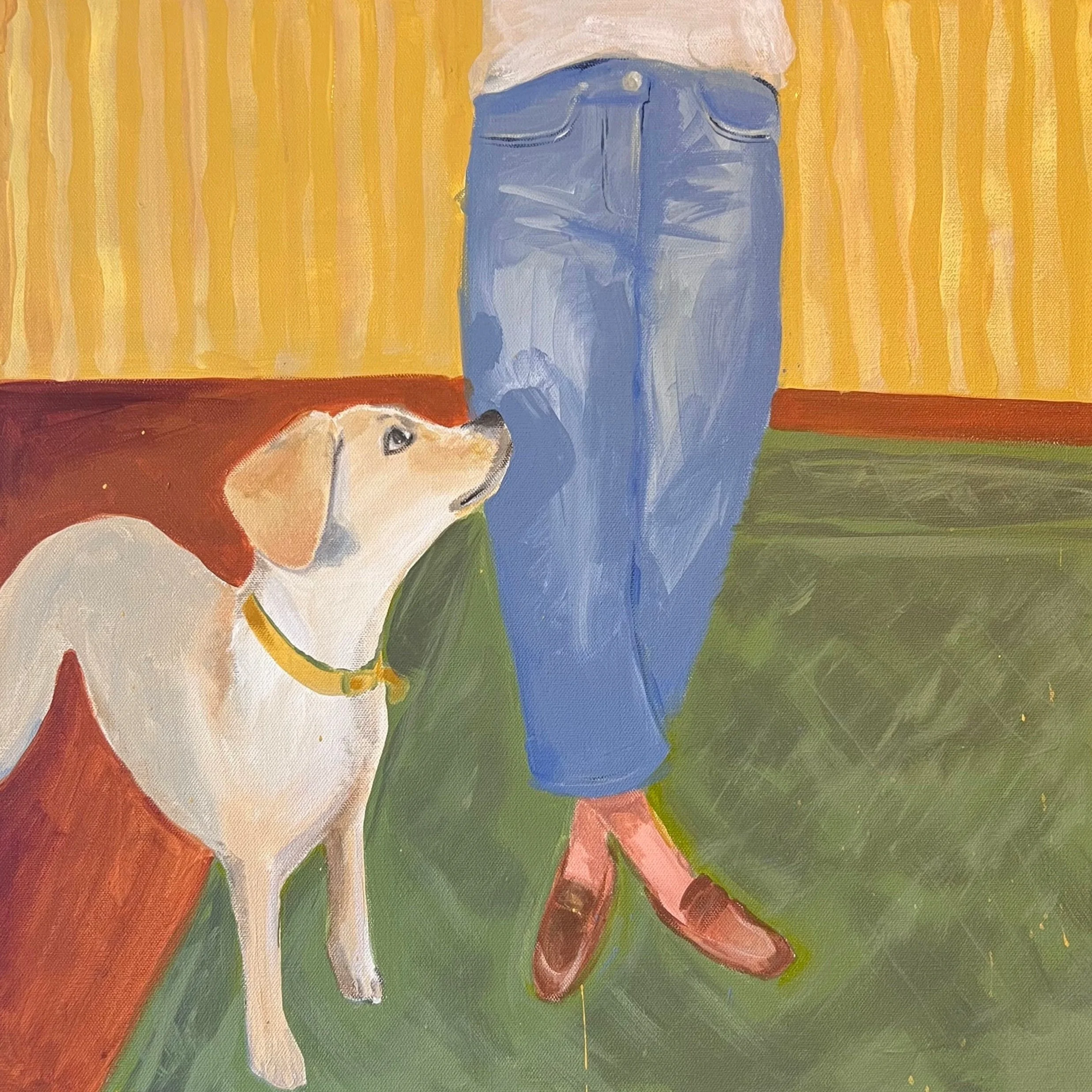 Leanne Luce, Yellow Jeans, 2024, Acrylic on Canvas, 20” x 20”